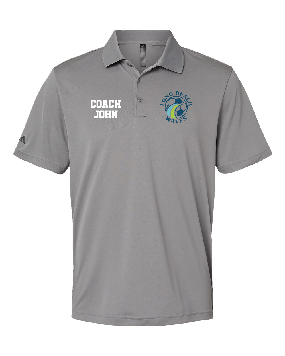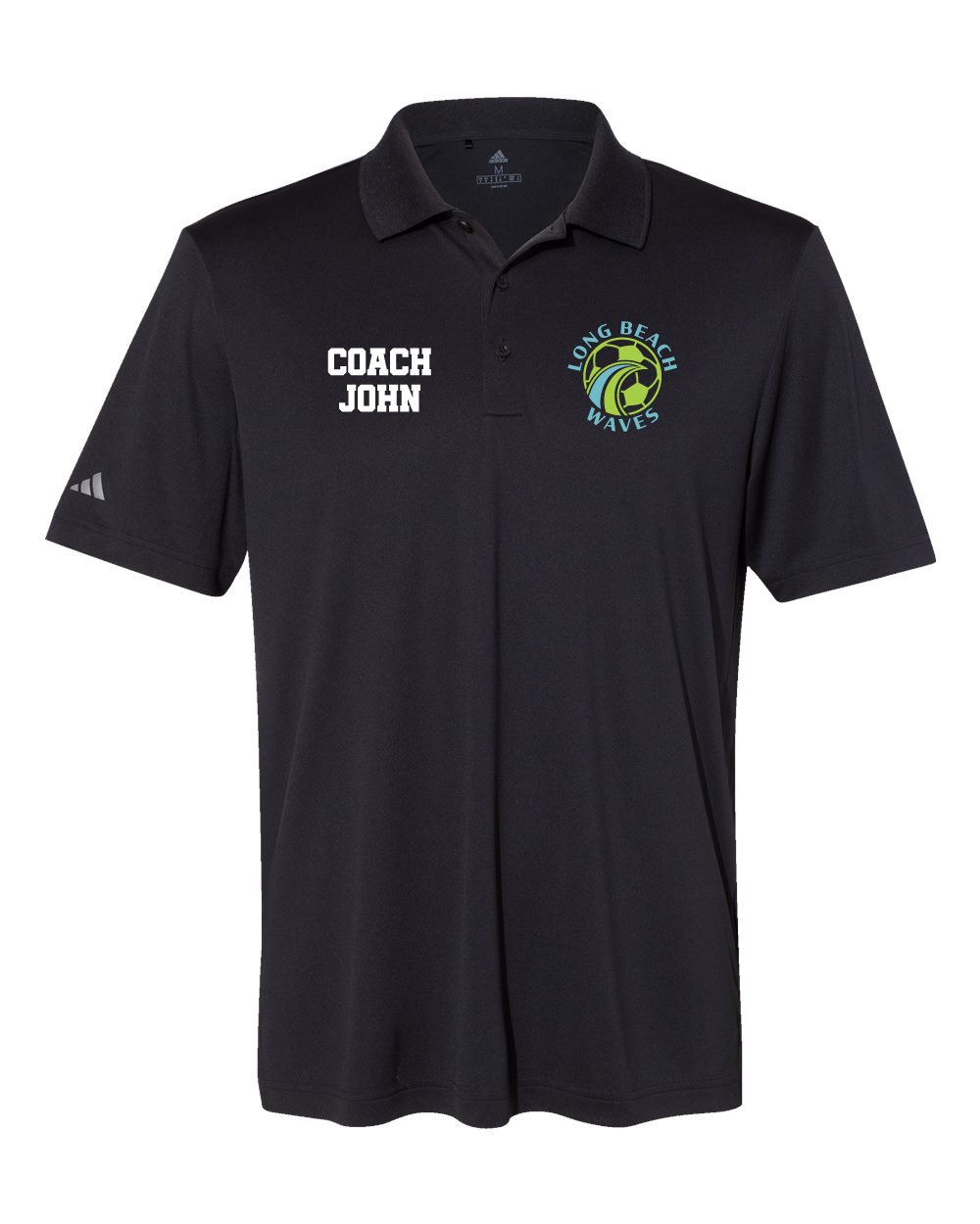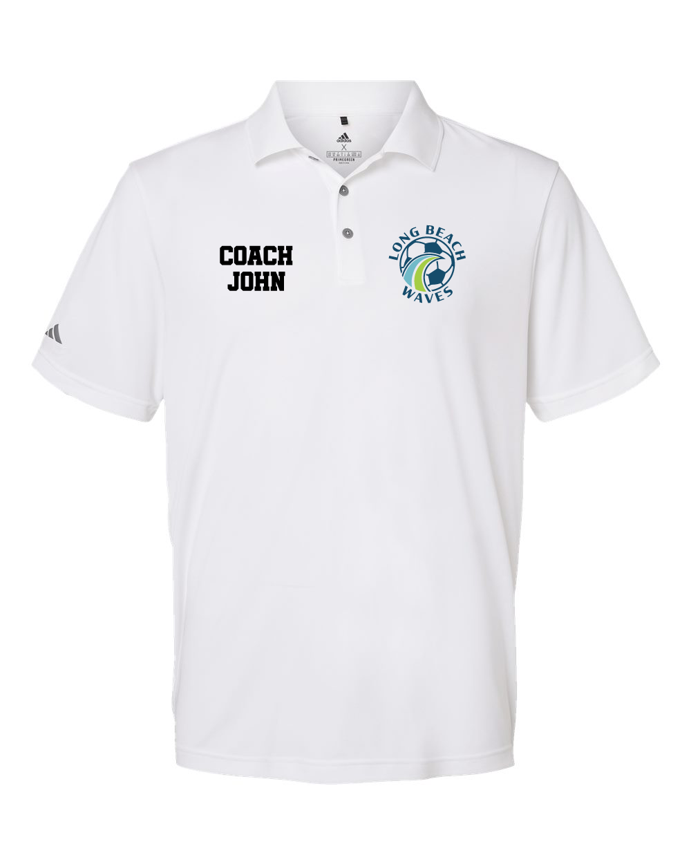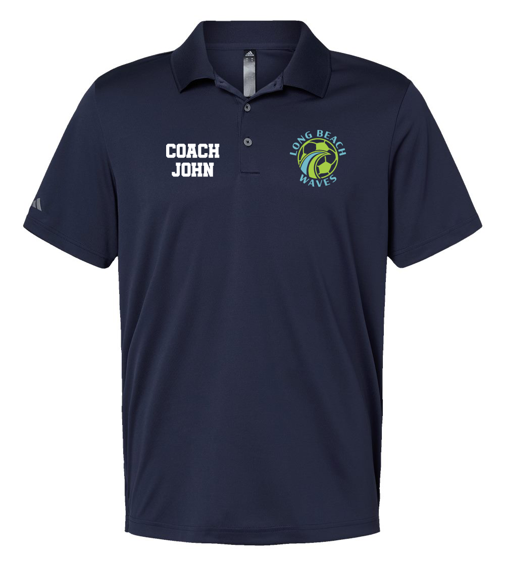 Adidas Coach Polo with LB Waves Logo and optional name. The word “COACH” is optional. Please add “COACH” with the name or shirt will be printed with the only what is entered into the name field. ie “COACH JANE” vs “JANE”